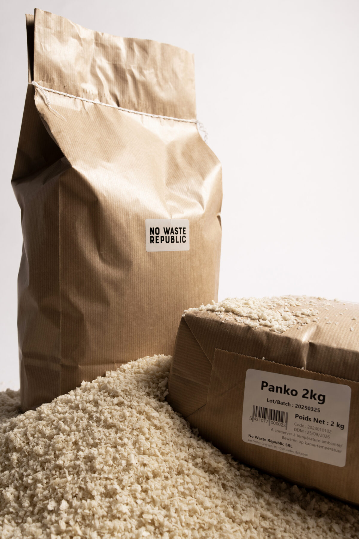 Le Panko de No Waste Republic est le fruit du recyclage des surplus de production de pain collectés auprès de nos partenaires boulangers en Belgique. Il offre aux restaurateurs et aux producteurs une alternative locale et circulaire au Panko conventionnel souvent importé d’Asie.